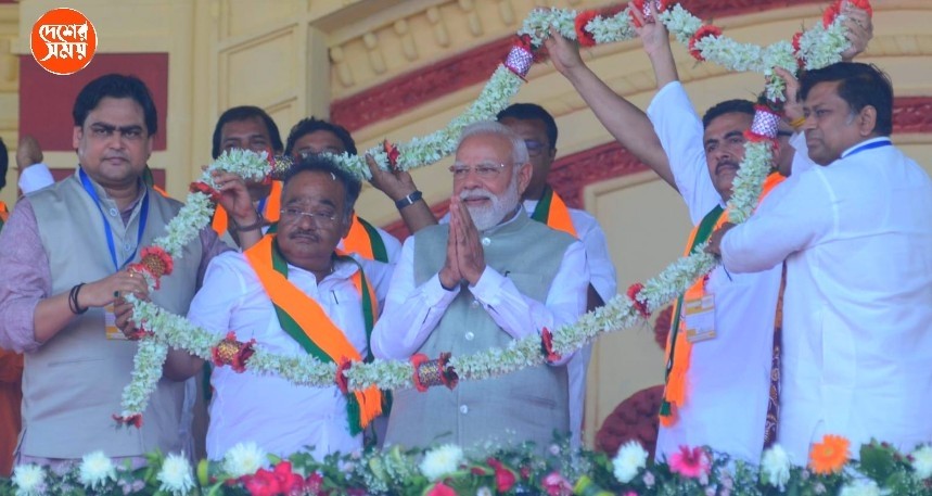 সব ঠিক থাকলে আগামী সোমবার বিধানসভা ভোট ঘোষণা হয়ে যাবে। তার আগে রাজ্যের রাজনৈতিক উত্তাপ আরও কিছুটা বাড়িয়ে দিলেন প্রধানমন্ত্রী নরেন্দ্র মোদী। শনিবার ব্রিগেডে সভা করেছেন তিনি। আর সেখান থেকে স্বভাবসিদ্ধ ভঙ্গিতেই তৃণমূল কংগ্রেসকে নিশানা করেন তিনি।