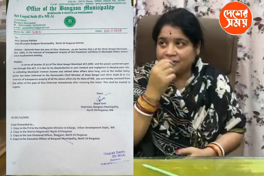 বনগাঁ : দল তাঁকে চেয়ারম্যানের পদ থেকে পদত্যাগ করতে বলেছে। ১৫ নভেম্বর অবধি সময়সীমা বেঁধে দেওয়া হয়েছে। সেই নির্দেশ এখনও মানেননি, উলটে ভাইস চেয়ারম্যান জ্যোৎস্না আঢ‍্যকে পদ থেকে সরিয়ে দিলেন বনগাঁ পুরসভার চেয়ারম্যান গোপাল শেঠ। মঙ্গলবার দুপুরে অপসারণের চিঠি পেয়ে গোপালের বিরুদ্ধে চক্রান্তের অভিযোগ তুলে সরব হলেন জ্যোৎস্না আঢ‍্য।