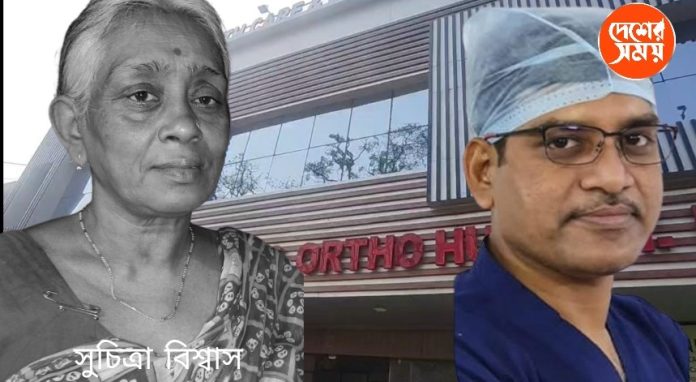 মৃতার পরিবারের সদস্যদের অভিযোগ, যেদিন সুচিত্রা বিশ্বাস পায়ের গোড়ালিতে আঘাত পান, সেদিন প্রথমে বনগাঁ হাসপাতালের আউটডোরে ডা. অম্লান দে কে দেখানো হয়। এক্সরে করার পর তিনি জানান, গোড়ালির হাড় ভেঙে গেছে এবং একাধিক লিগামেন্ট ছিড়ে গেছে। অস্ত্রপচার করতে হবে। সরকারি হাসপাতালের পরিবর্তে ওই চিকিৎসকের ব্যক্তিগত হাসপাতালে চিকিৎসা করানোর জন্য বার বার বলা হয় বলে পরিবারের সদস্যদের অভিযোগ।