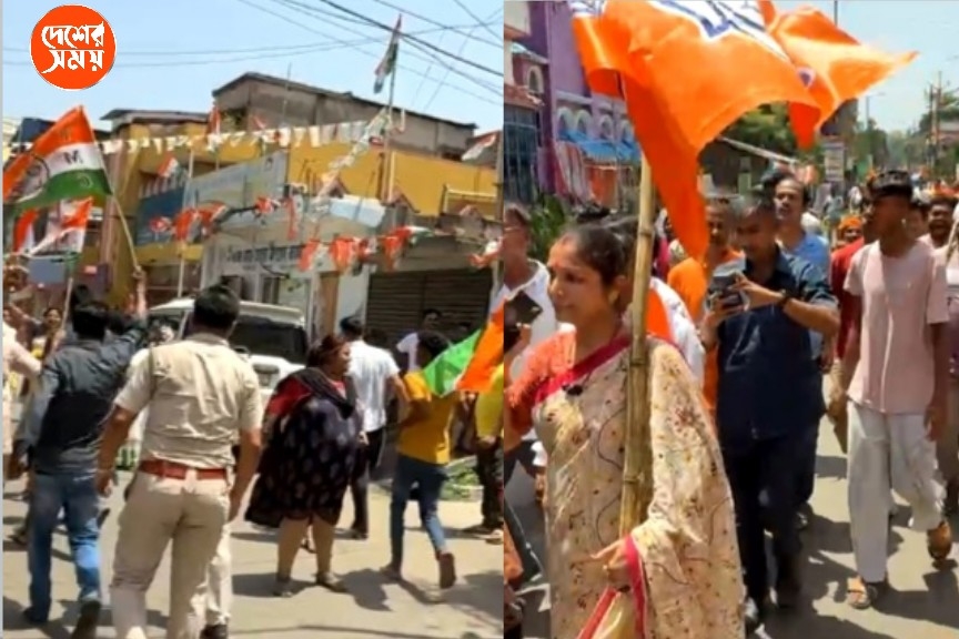 দুই ‘ফুল’-এর দুই মিছিল মুখোমুখি, রবিবাসরীয় প্রচারে উত্তপ্ত বনগাঁ