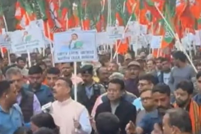 মমতার পর যাদবপুর ৮বি থেকেই মিছিল করলেন শুভেন্দু , ‘মমতাকে নকল করছেন’, খোঁচা তৃণমূলের