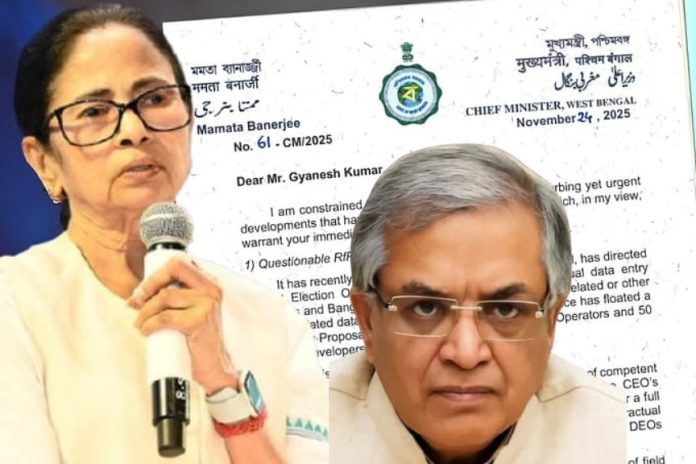 ‘উদ্বেগজনক’ সিদ্ধান্ত নিয়ে এবার সরাসরি মুখ্য নির্বাচন কমিশনারকে কড়া ভাষায় চিঠি দিলেন মুখ্যমন্ত্রী মমতা বন্দ্যোপাধ্যায় । রাজ্যের প্রশাসনিক প্রধানের অভিযোগ— নির্বাচনকে ঘিরে কিছু পদক্ষেপ রাজনৈতিক চাপেই করা হচ্ছে, যা ভোটপ্রক্রিয়ার নিরপেক্ষতা ও বিশ্বাসযোগ্যতাকে প্রশ্নের মুখে ফেলতে পারে।