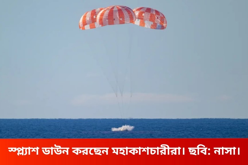 পৃথিবী থেকে ৪ লক্ষ ৬ হাজার ৭৭৮ কিলোমিটার দূরে পাড়ি। মানব ইতিহাসে এতদূর কেউ যায়নি। সেই মিশন সফল করে পৃথিবীতে আবার ফিরে এল মহাকাশ যান। প্রশান্ত মহাসাগরে স্প্ল্যাশডাউনের মাধ্যমেই সফল হল নাসার আর্টেমিস টু (Artemis II) মিশন। সুস্থভাবে ফিরে এলেন নাসার পাঠানো চার মহাকাশচারী।