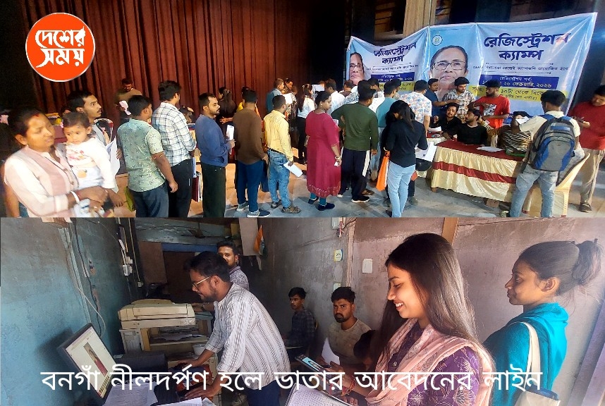 সকাল থেকেই বনগাঁ থেকে কলকাতা— এই বেকার ভাতার জন্য দিকে দিকে লম্বা লাইন।